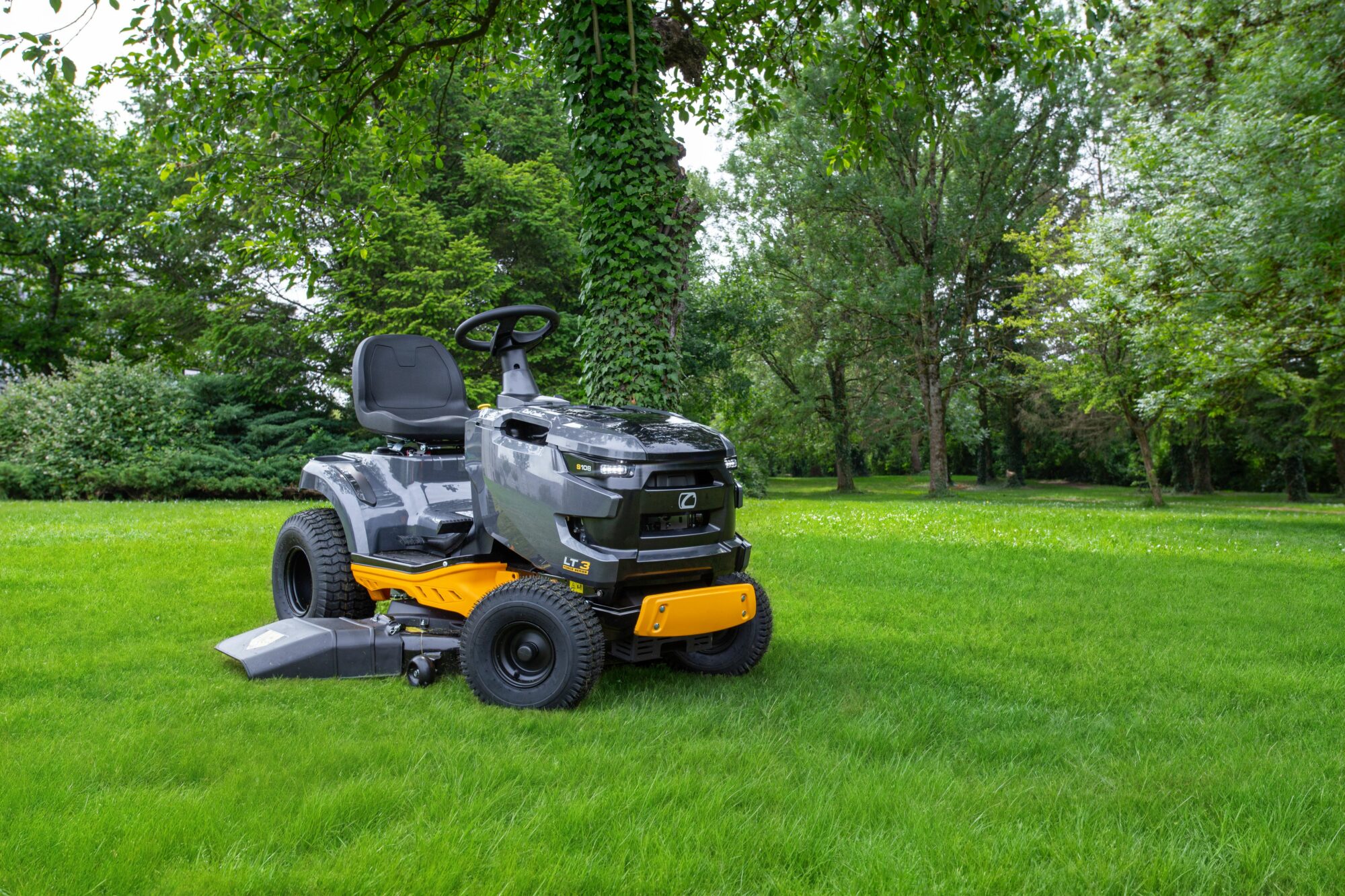 Tracteur tondeuse d’entrée de gamme premium. Idéal pour les terrains de 2 000 à 5 000 m².